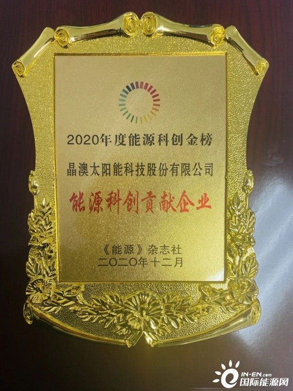 近日,由《能源》杂志社主办的“2020能源年会暨第12届中国能源企业高层论坛”在北京举行。活动期间,“2020年度能源科创金榜”同步揭晓,表彰行业内为科技创新做出突出贡献的标杆企业,晶澳科技荣膺“能源科创贡献企业”殊荣。